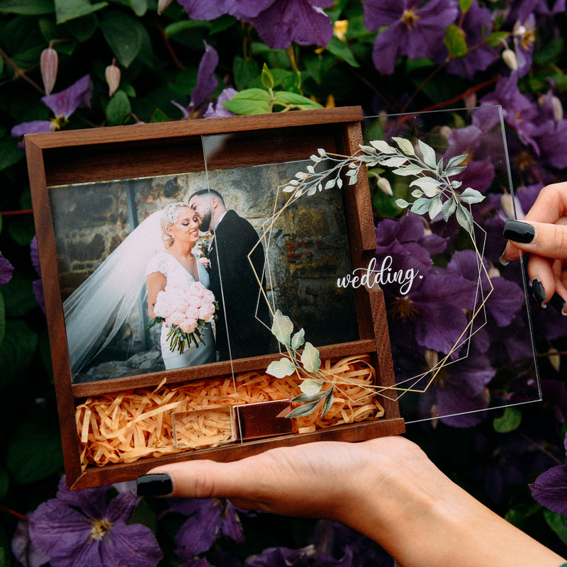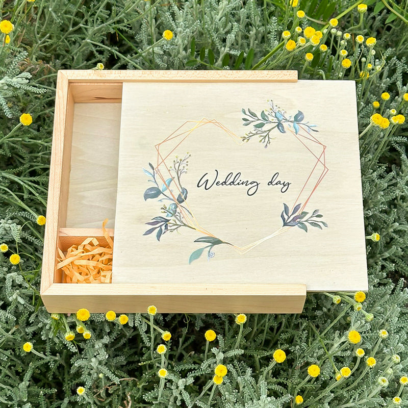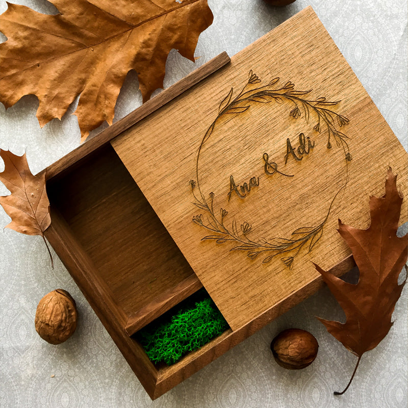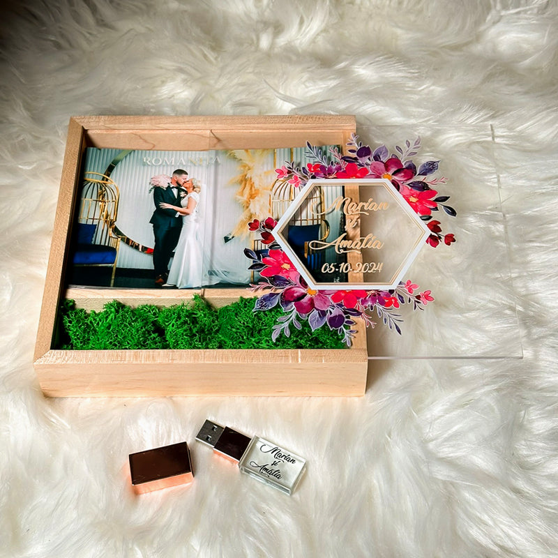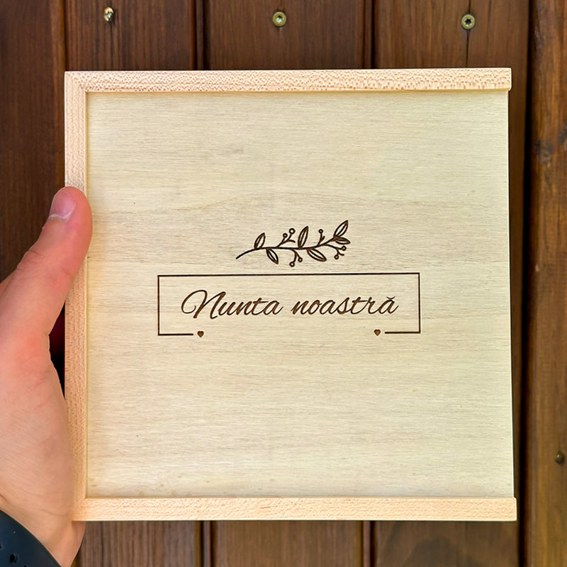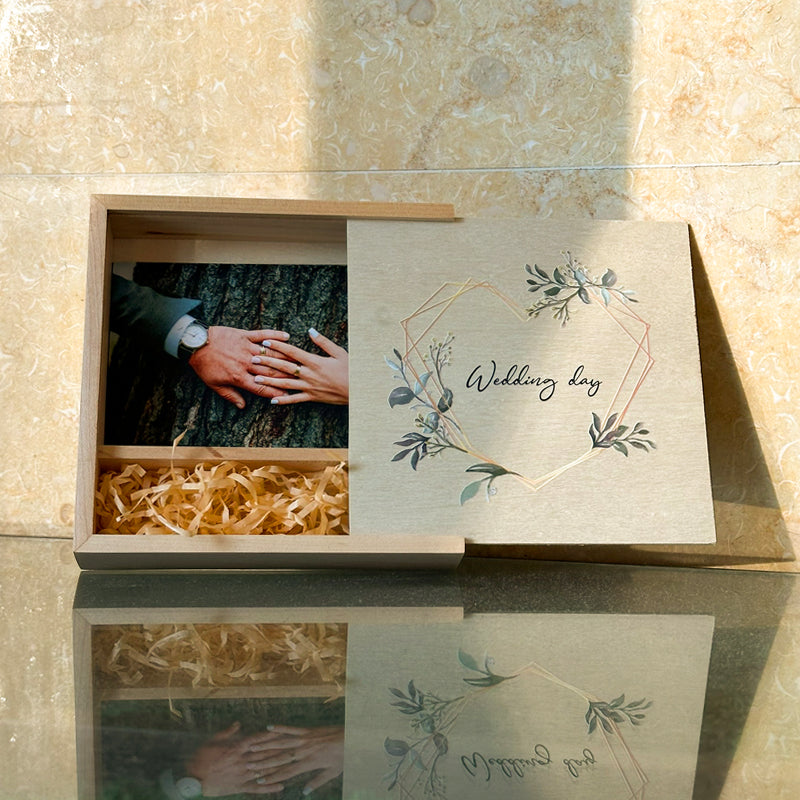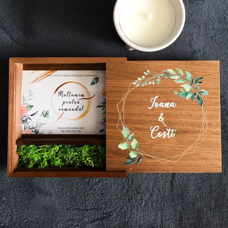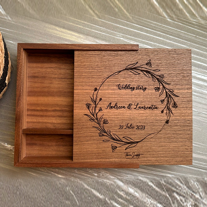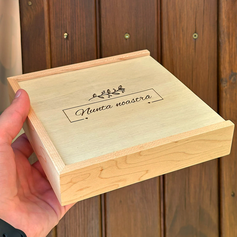 Cutie din lemn cu capac glisant pentru stick și poze 10/15cm