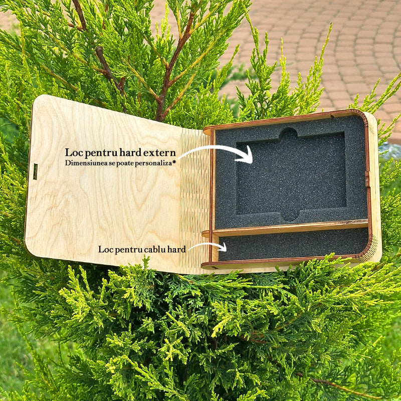 Această cutie din lemn te ajută să împachetezi și să păstrezi în siguranță banalul hard sau ssd extern, frumos împacheta. Tot ce ne rămâne peste ani sunt amintirile. Prin intermediul pozelor și filmărilor, fiecare amintire este tot mai aproape de momentul prezent.