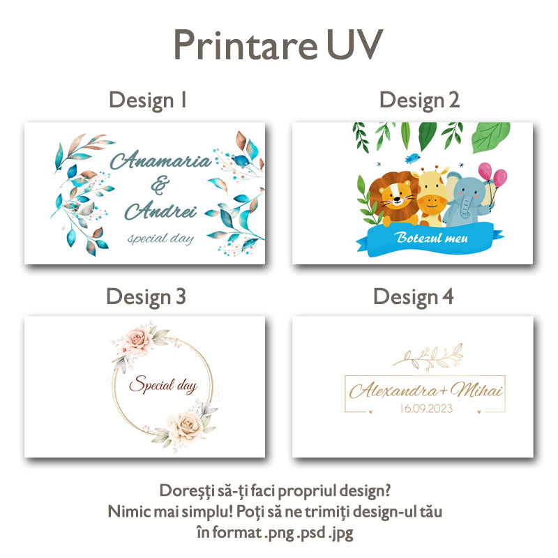 VERIFICAȚI ATENT TEXTUL ÎNAINTE DE PLASAREA COMENZII, ACESTA VA FI PERSONALIZAT EXACT CUM ESTE SCRIS! PENTRU O CALITATE SUPERIOARĂ A PRINTULUI VĂ RUGĂM SĂ NE TRIMITEȚI FIȘIERELE LA REZOLUȚIE MARE. VĂ RECOMANDĂM SĂ FOLOSIȚI SITE-UL GRATUIT SWISSTRANSFER.COM ȘI SĂ ATAȘAȚI LINK-UL GENERAT ÎN SECȚIUNEA "DETALII SUPLIMENTARE"