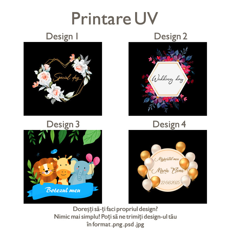 VERIFICAȚI ATENT TEXTUL ÎNAINTE DE PLASAREA COMENZII, ACESTA VA FI PERSONALIZAT EXACT CUM ESTE SCRIS! PENTRU O CALITATE SUPERIOARĂ A PRINTULUI VĂ RUGĂM SĂ NE TRIMITEȚI FIȘIERELE LA REZOLUȚIE MARE. VĂ RECOMANDĂM SĂ FOLOSIȚI SITE-UL GRATUIT SWISSTRANSFER.COM ȘI SĂ ATAȘAȚI LINK-UL GENERAT ÎN SECȚIUNEA "DETALII SUPLIMENTARE"