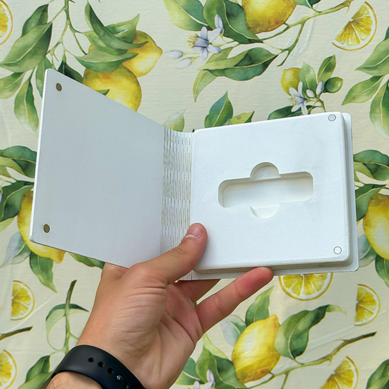 Dimensiuni exterioare cutie: 13,5 cm x 12 cm x 2,2 cm (L x l x H)